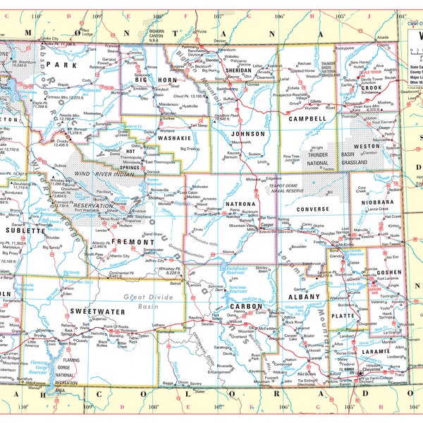 Wyoming Map Instant Download Printable Map Vintage Map Etsy Australia