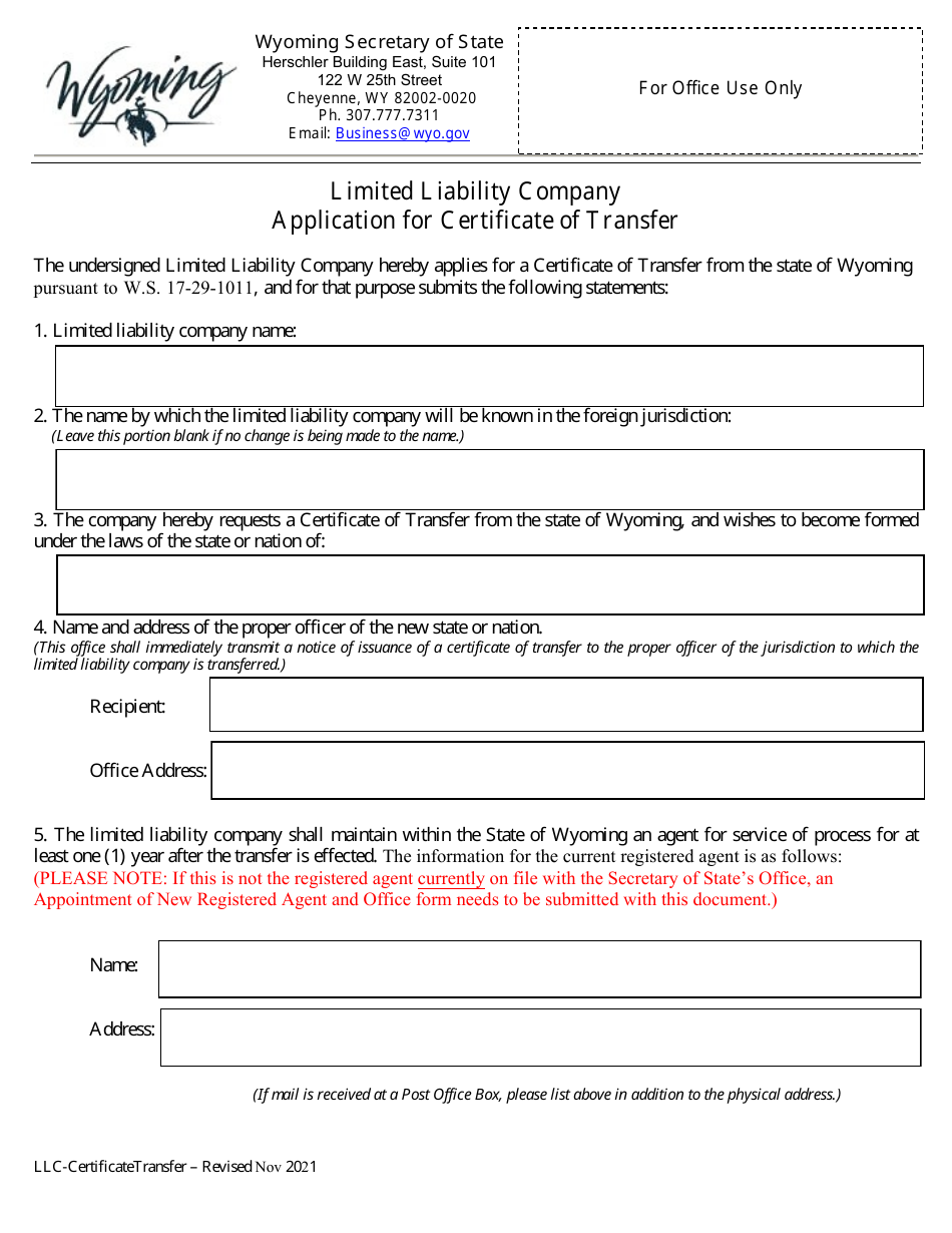Fillable Online Certificate #: 002118 Phone Wyoming Fax Email Print
