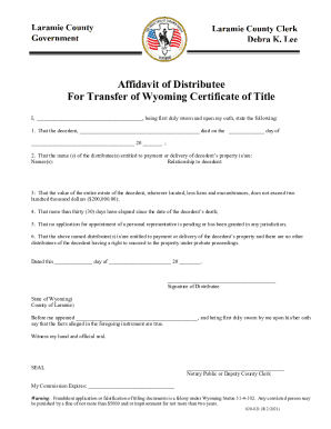 Fillable Online Affidavit of Distributee For Transfer of Wyoming