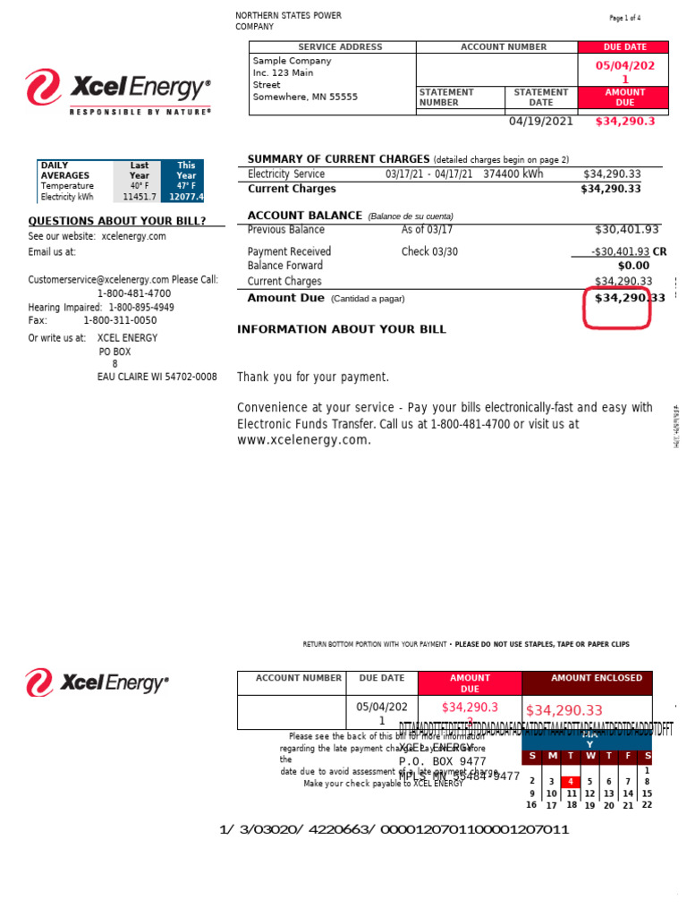 USA Utility Bill Template (Xcel Energy) Proof of address