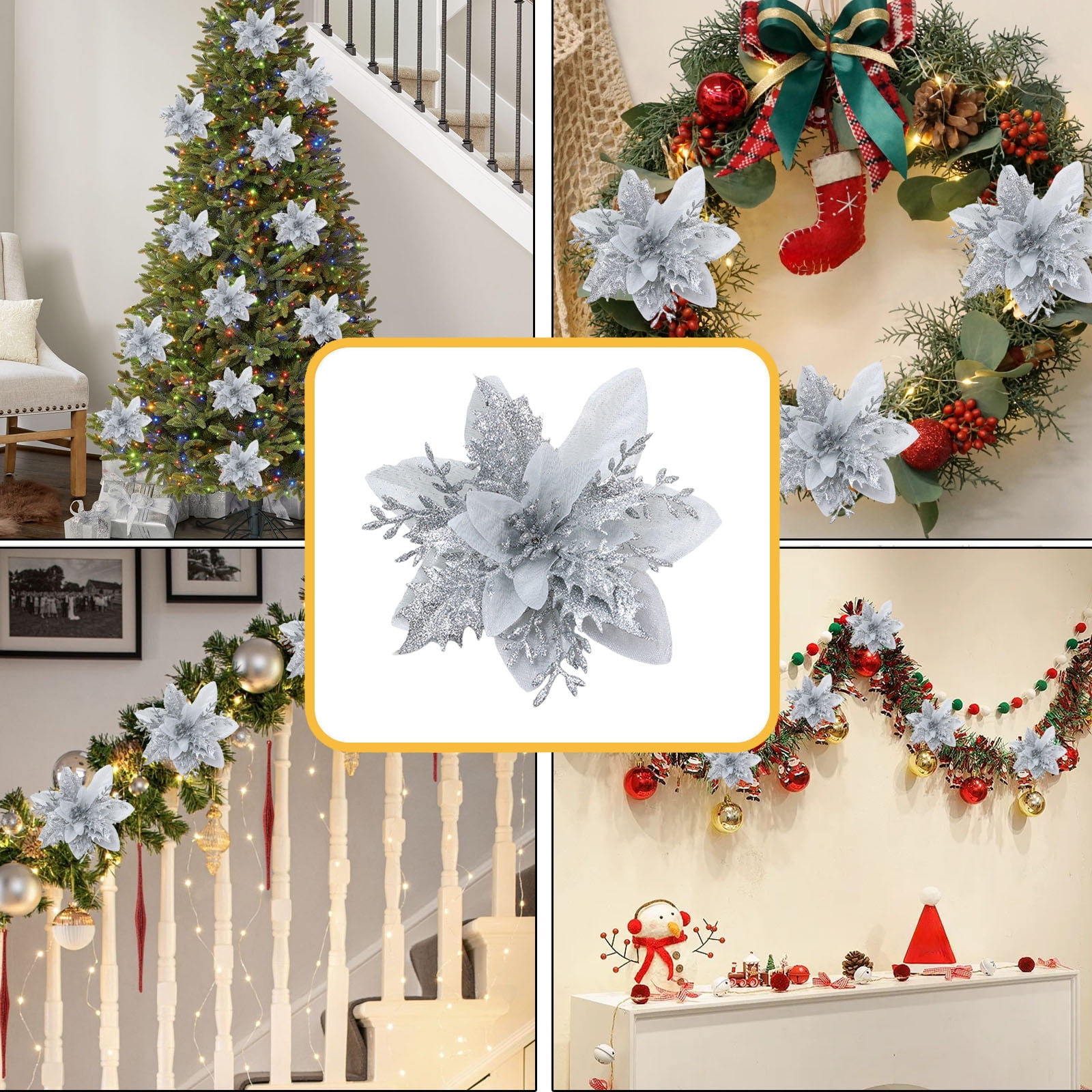 PONPRNGY 6Pcs Christmas Poinsettia Flower Decorations Artificial