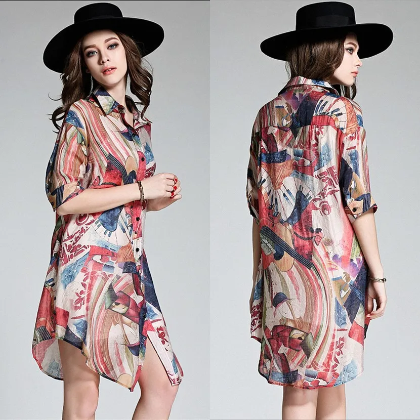 2017 Summer Plus Size Boho Blouses Feminino Women Long Print Chiffon