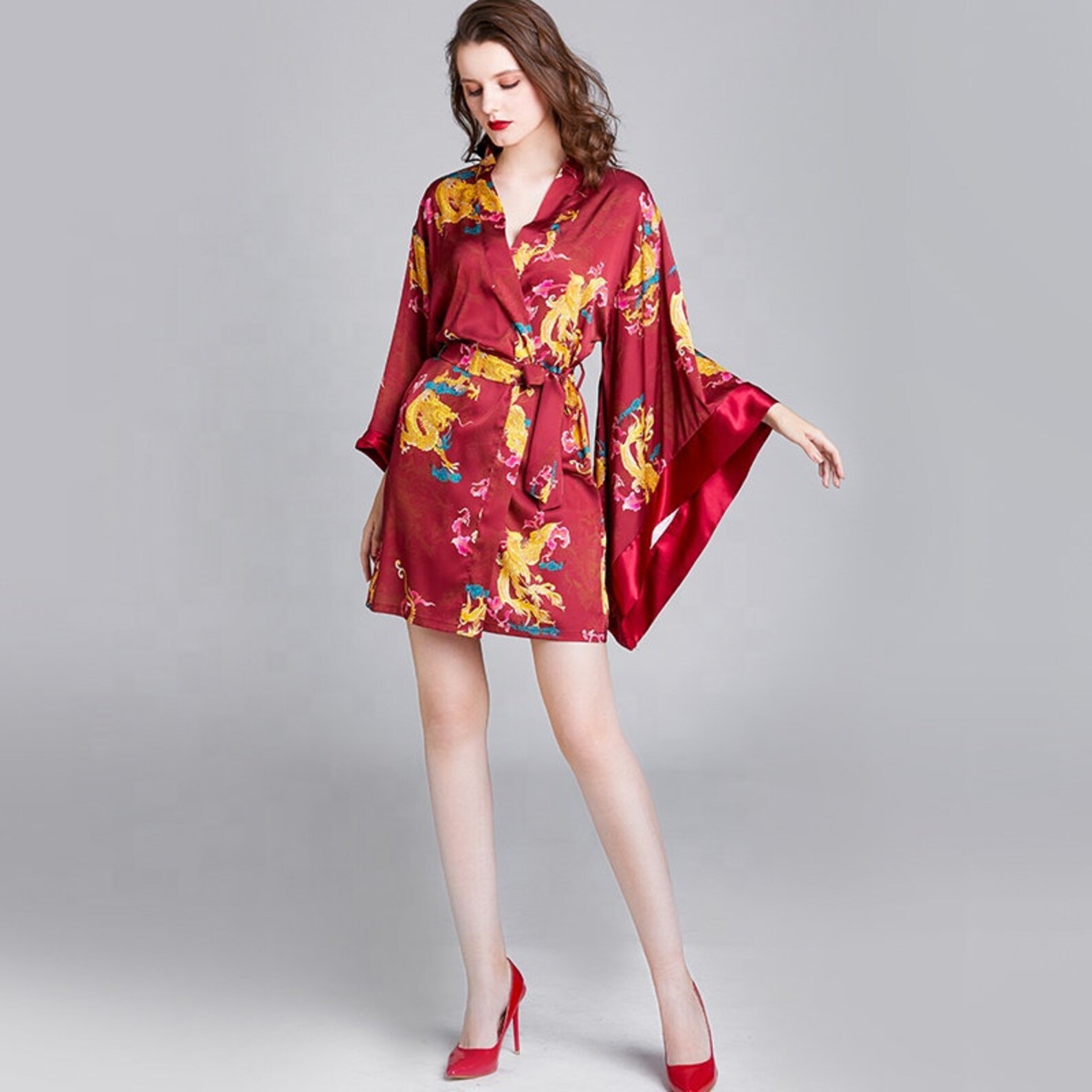 Women Elegant Kimono Robe Golden Dragon and Phoenix Printed Etsy