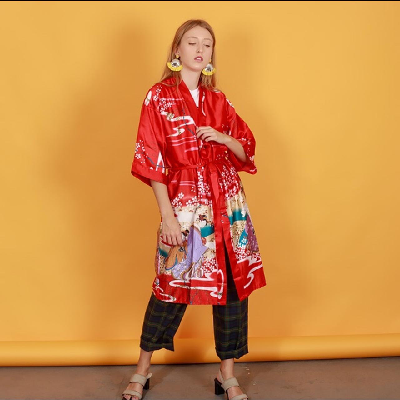 LichKing Women Ladies Elegant Long Silk Print Kimono Gown Half