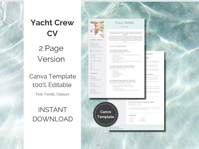 Yachting CV Template Yacht Crew CV Superyacht CV Canva Template