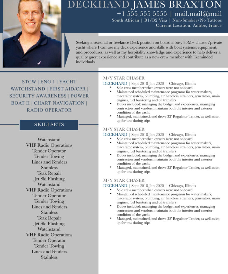 Yacht Crew Resume Template
