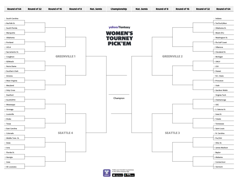 NCAA tournament: Printable men #39 s bracket for March Madness Yahoo Sports