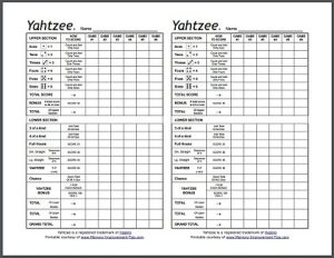 Yahtzee Score Sheets Printable Kiddo Shelter Free Printable Yahtzee