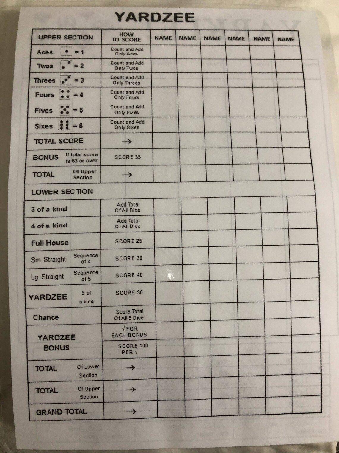 Yahtzee Scoresheet Dry Erase Reusable Fun Double Sided Etsy