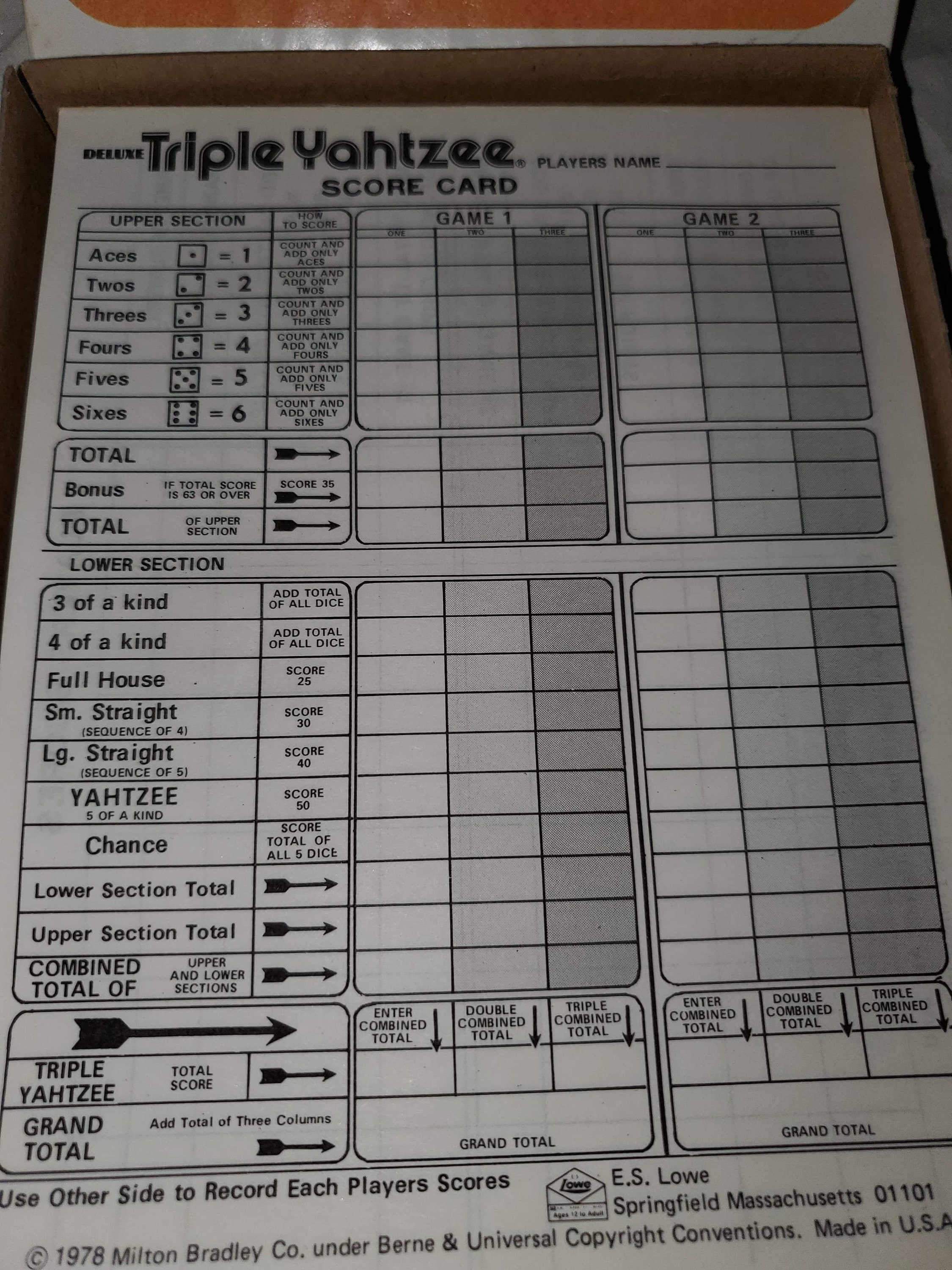 VINTAGE 1982 Yahtzee Score Card Sheets Boxed E6100 Milton Bradley Over