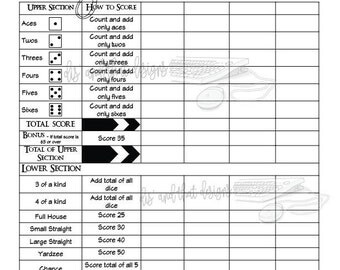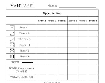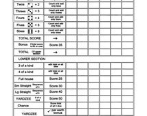 Yahtzee Replacement Score Sheets Board Game Printable Digital Download