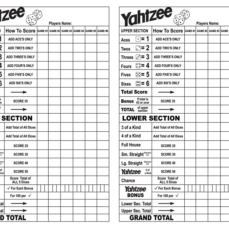 Free Printable Yahtzee Score Card Sheets PDF Templates
