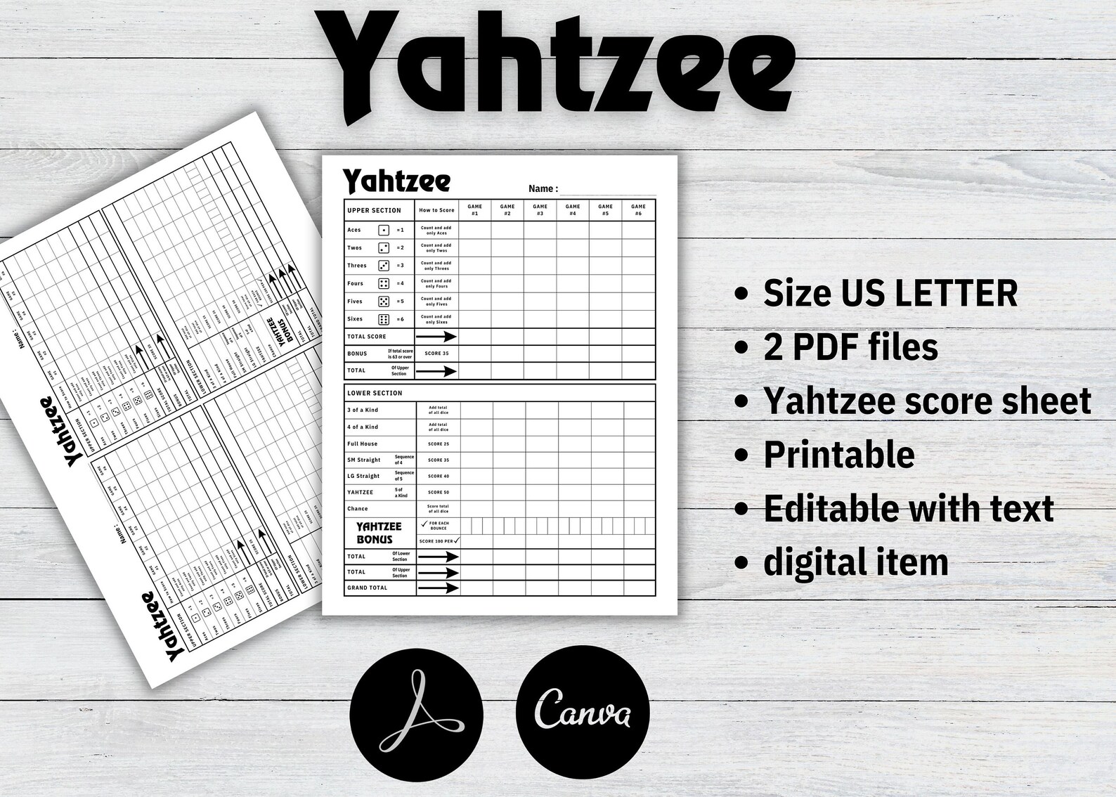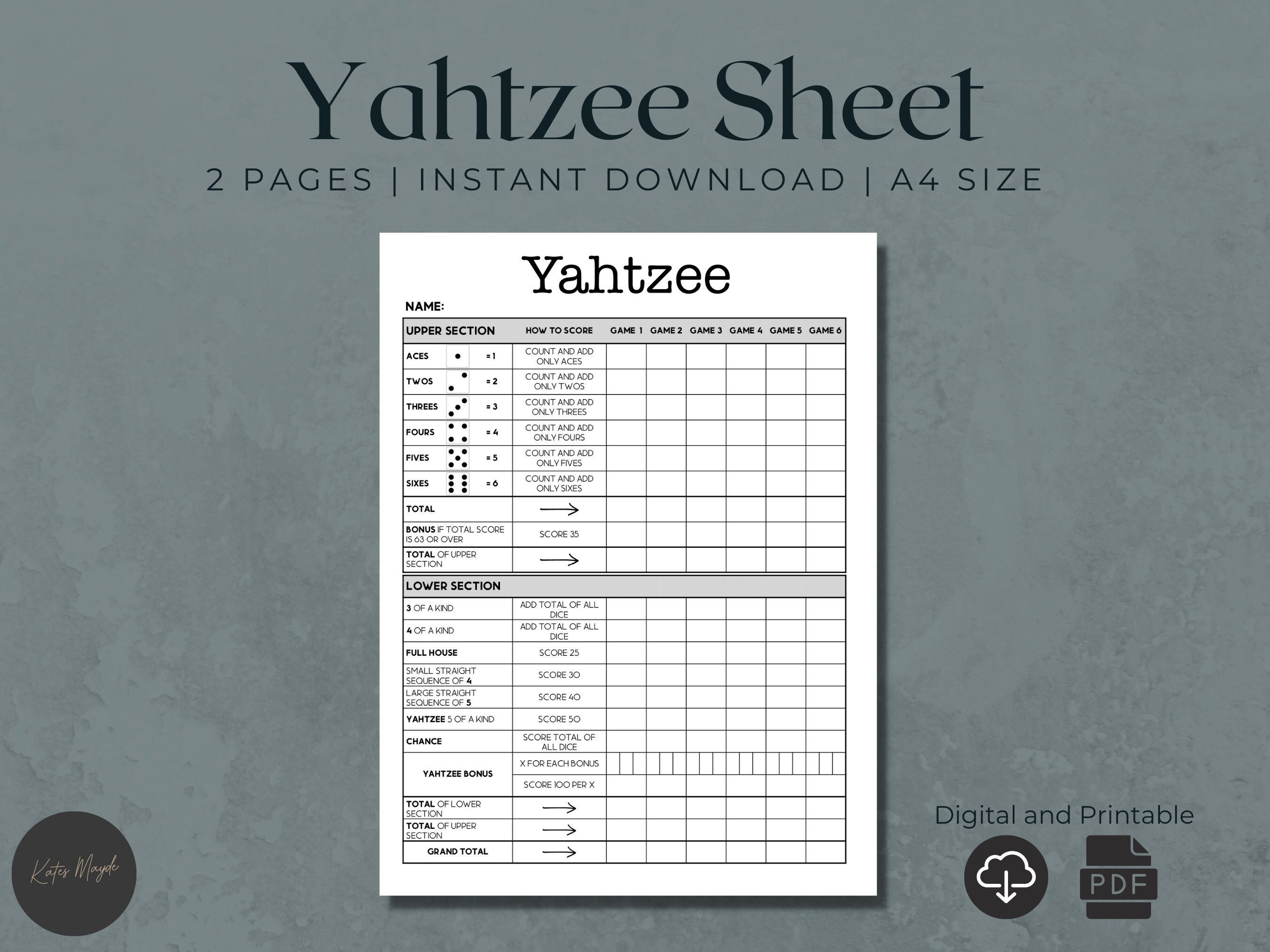 Yahtzee Score Card Sheet Printable Instant Download Refill Sheets Etsy