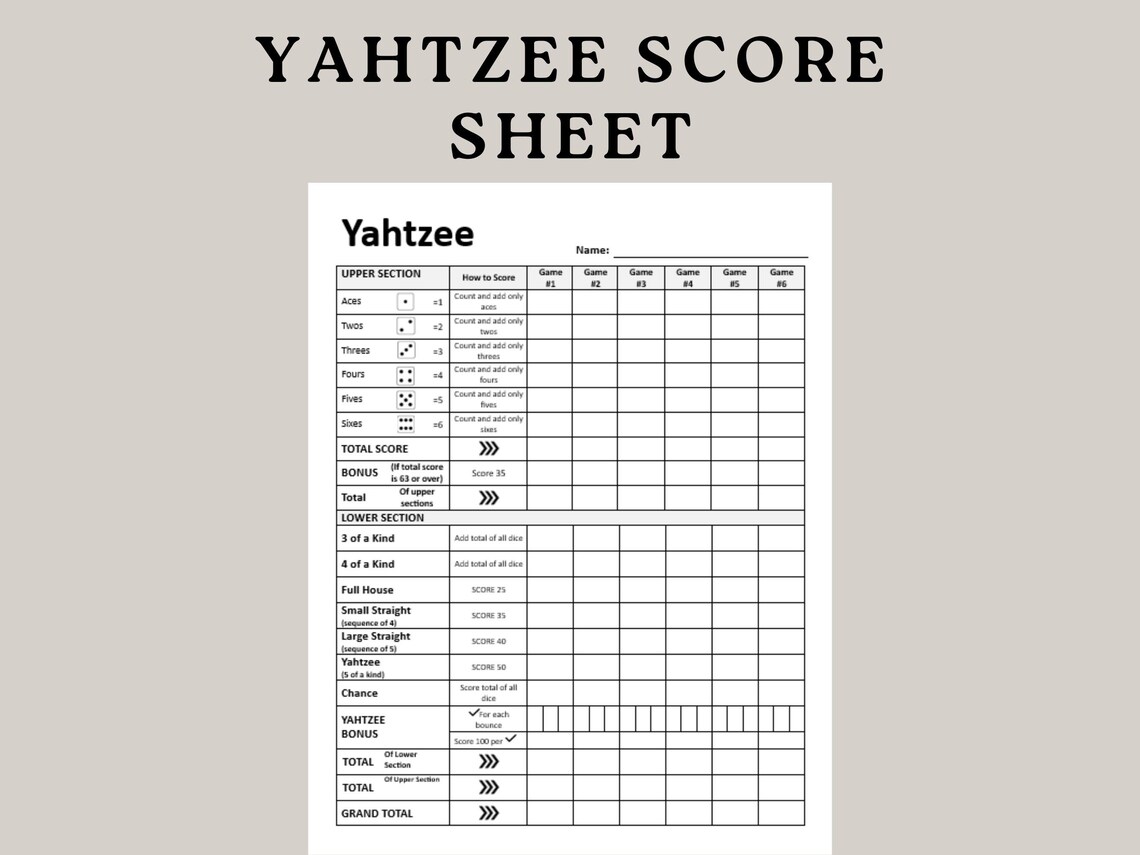 Yahtzee Score Sheets: Keep Track of Your Lucky Dice Rolls Yahtzee