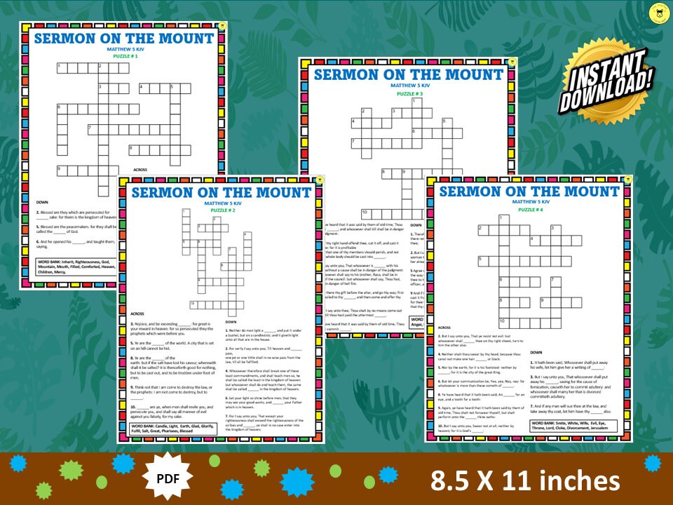 Bible Crossword Puzzle Sermon on the Mount Crossword Puzzle church
