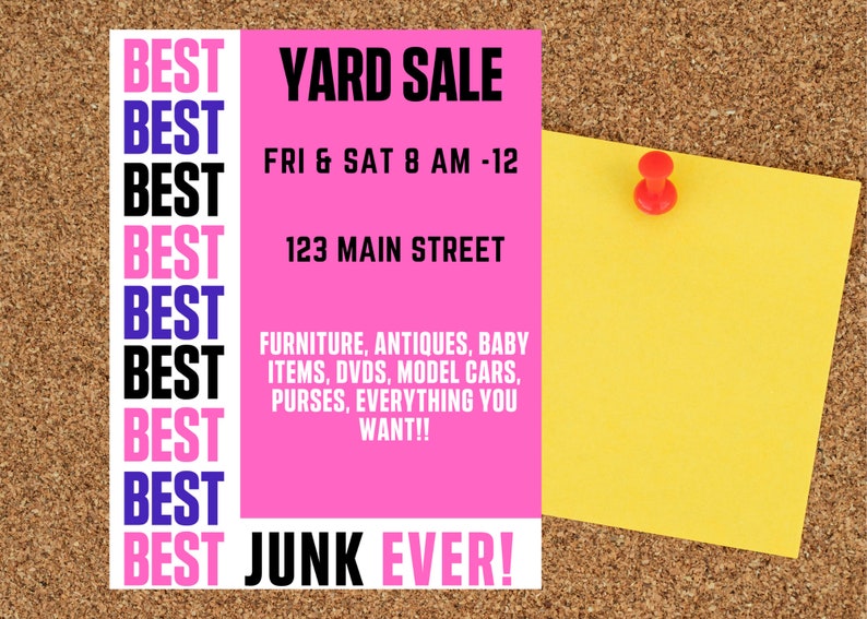 Best Junk Ever Yard Sale Sign Garage Sale Sign Yard Sale Flyer Yard