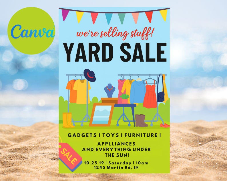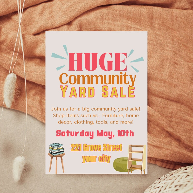 Editable Yard Sale Flyer Template Canva Design for Community Events