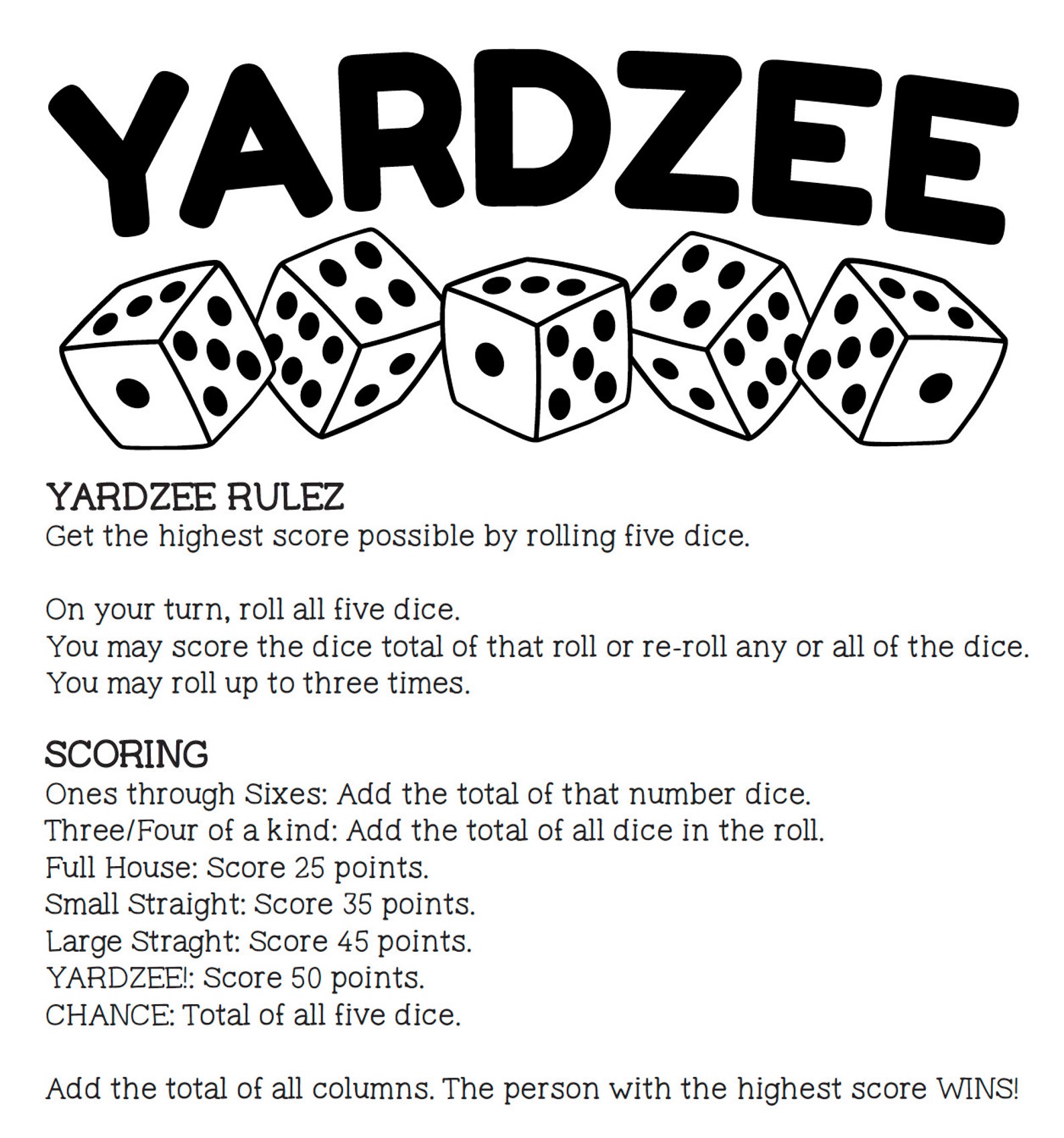 Easy Yardzee Yard Dice Game Tutorial Printable Scorecard and Rules