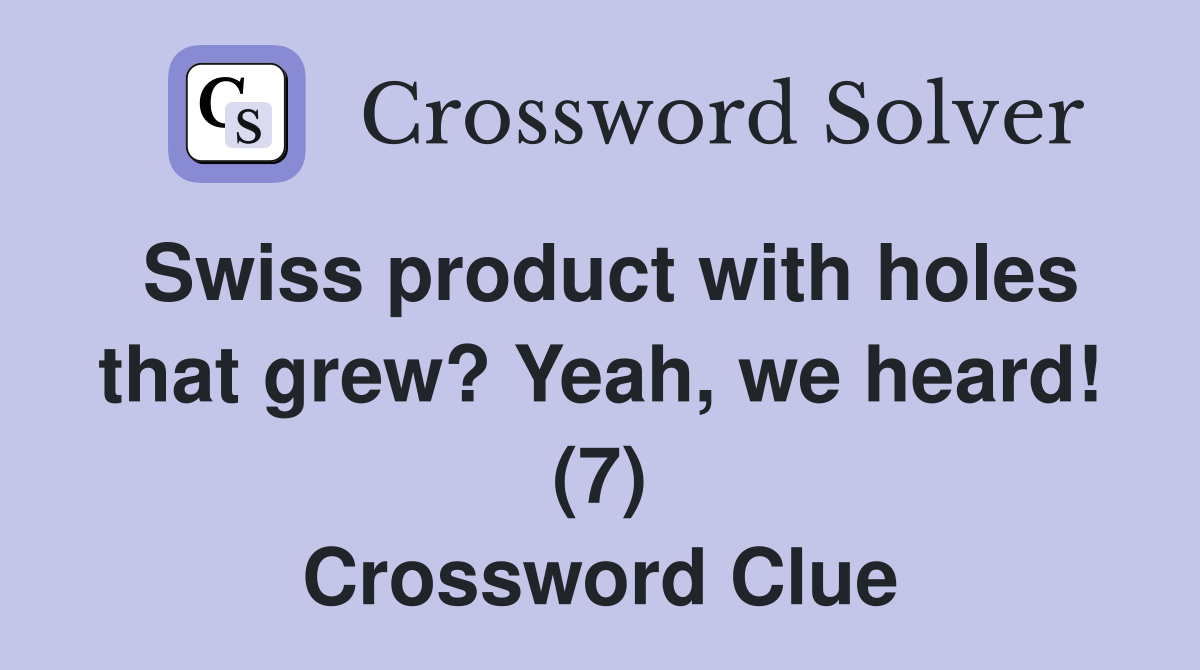 Swiss product with holes that grew? Yeah we heard (7) Crossword