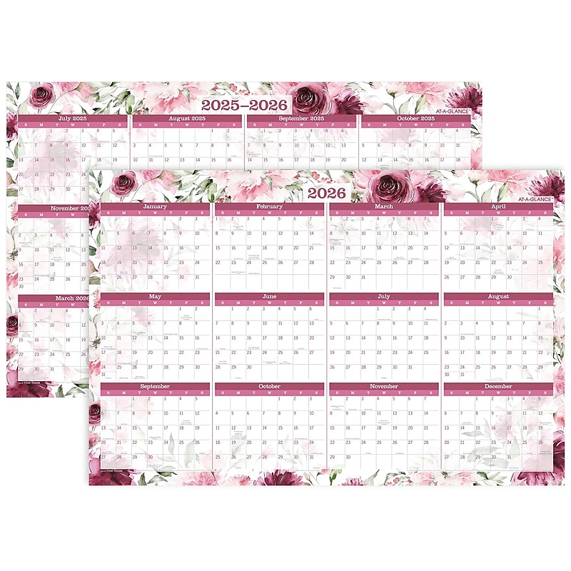 2025 2026 AT A GLANCE Badge Floral 36 quot x 24 quot Academic Calendar Yearly