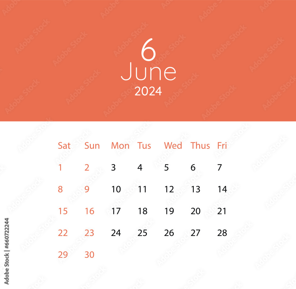 2024 Calendar year vector illustration week starts on Sunday Simple