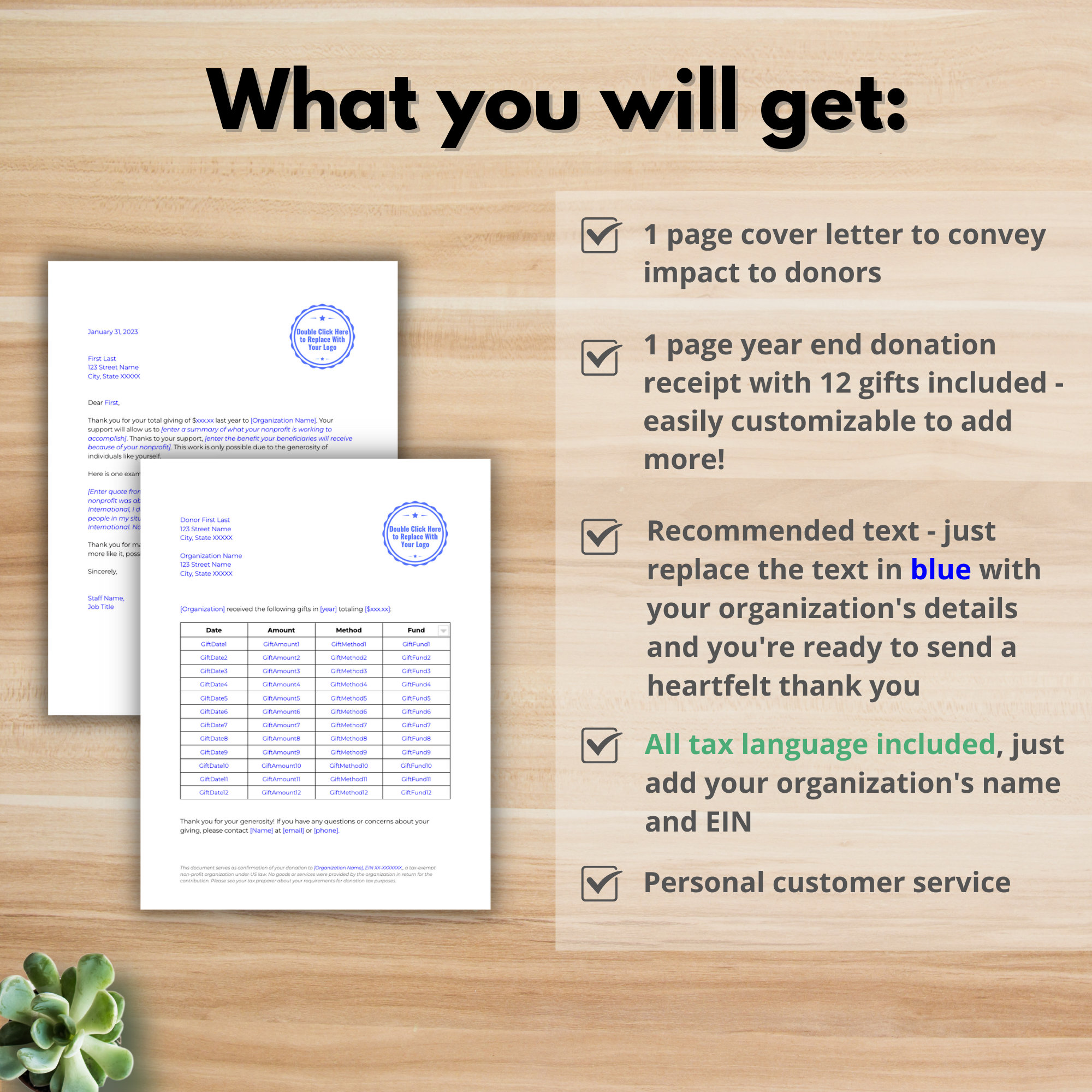 YEAR END RECEIPT Template Nonprofit Template Donor Acknowledgement