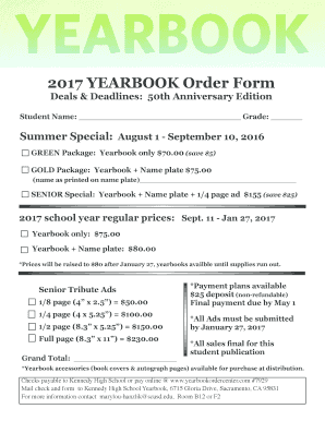 Fillable Online 2017 YEARBOOK Order Form Fax Email Print pdfFiller