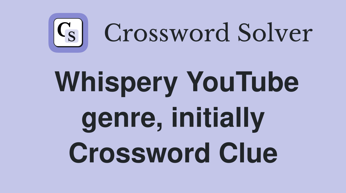 Whispery YouTube genre initially Crossword Clue Answers Crossword