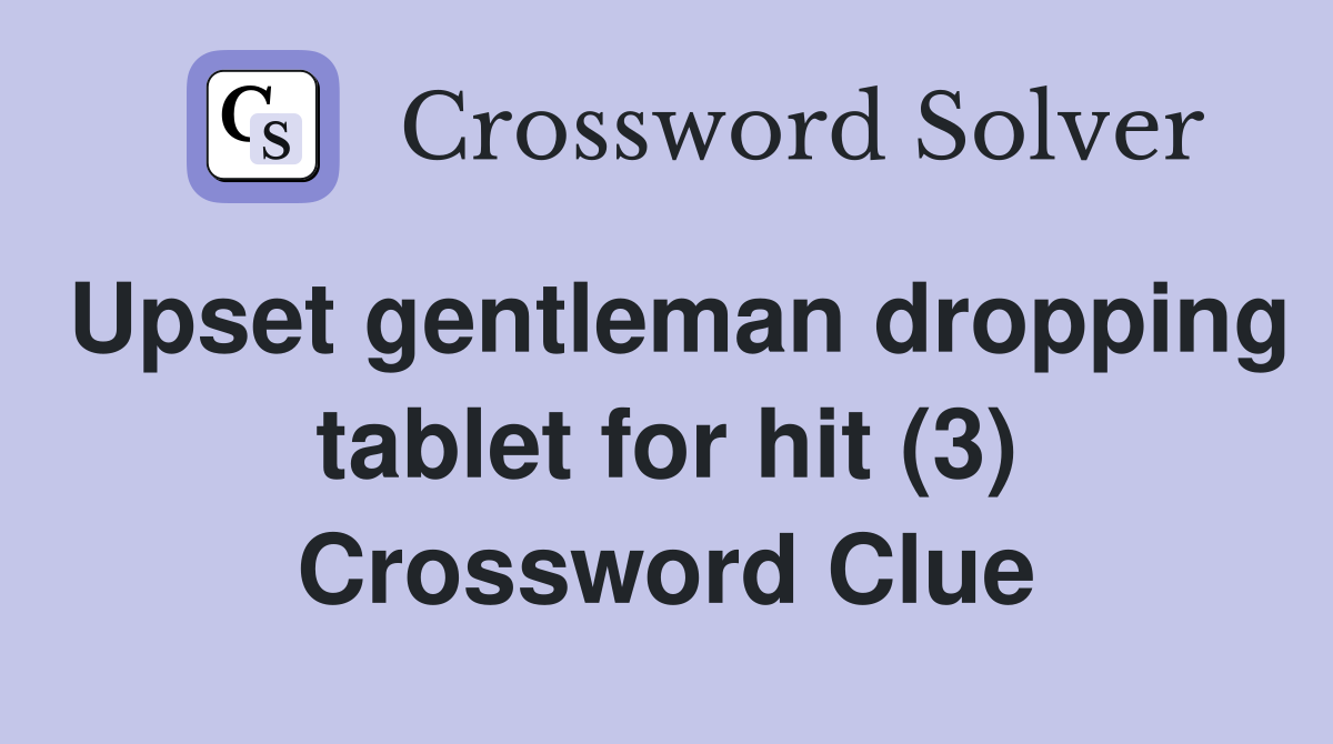 Upset gentleman dropping tablet for hit (3) Crossword Clue Answers