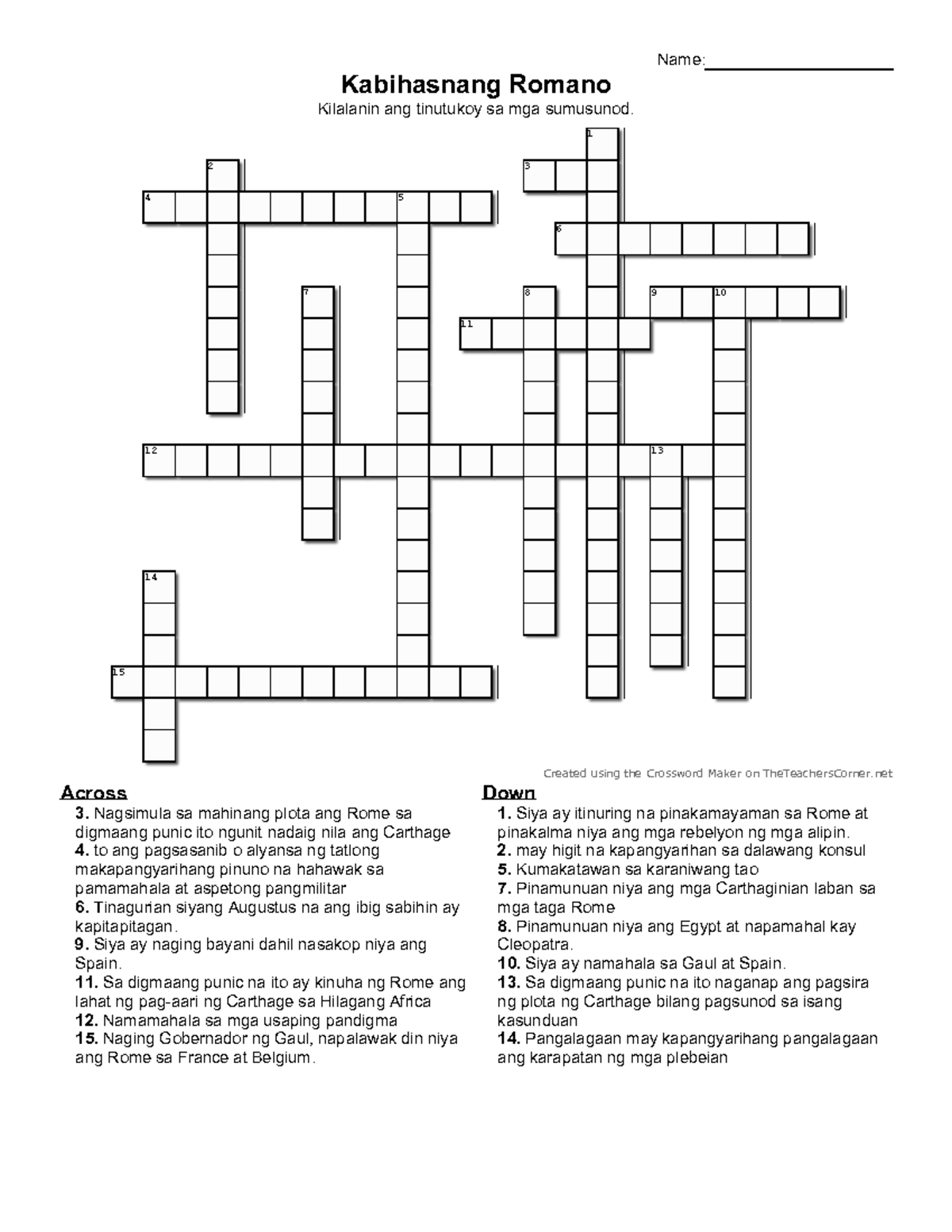 Crossword Kabihasnang Romano Down 1 Siya ay itinuring na