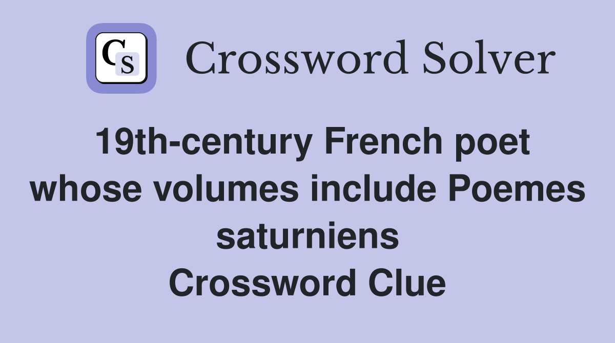 Here are some of the images for Yet To A Poet Crossword Clue that we found in our website database.