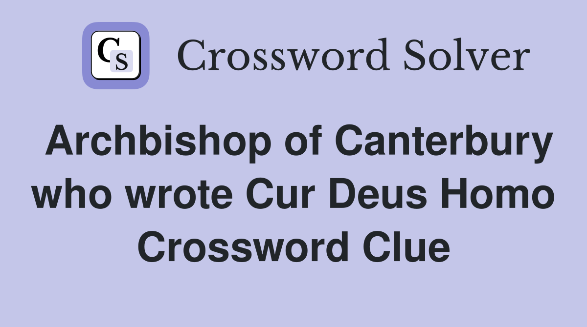 Archbishop of Canterbury who wrote Cur Deus Homo Crossword Clue