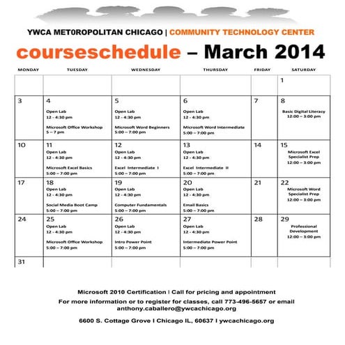 March 2014 Business Technology Courses at YMCA March 2014 PDF