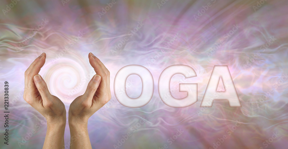 Come and Experience Yoga Energy Female using both hands to make the Y