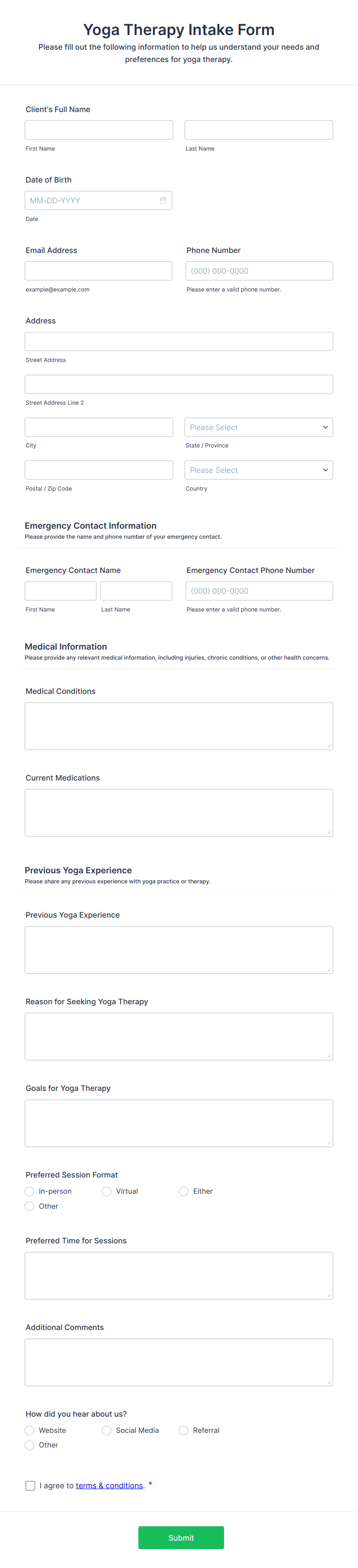 Yoga Therapy Intake Form Fill Online Printable Fillable Blank