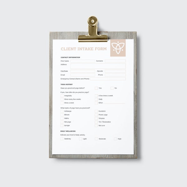 Editable Yoga Classes New Client Intake Form Template Yoga Studio