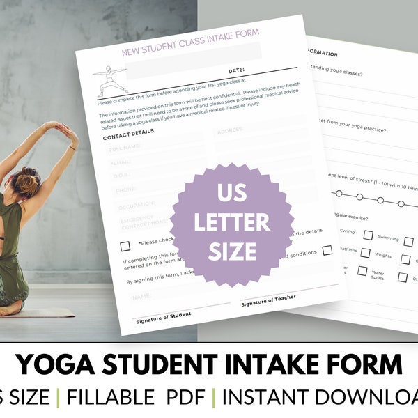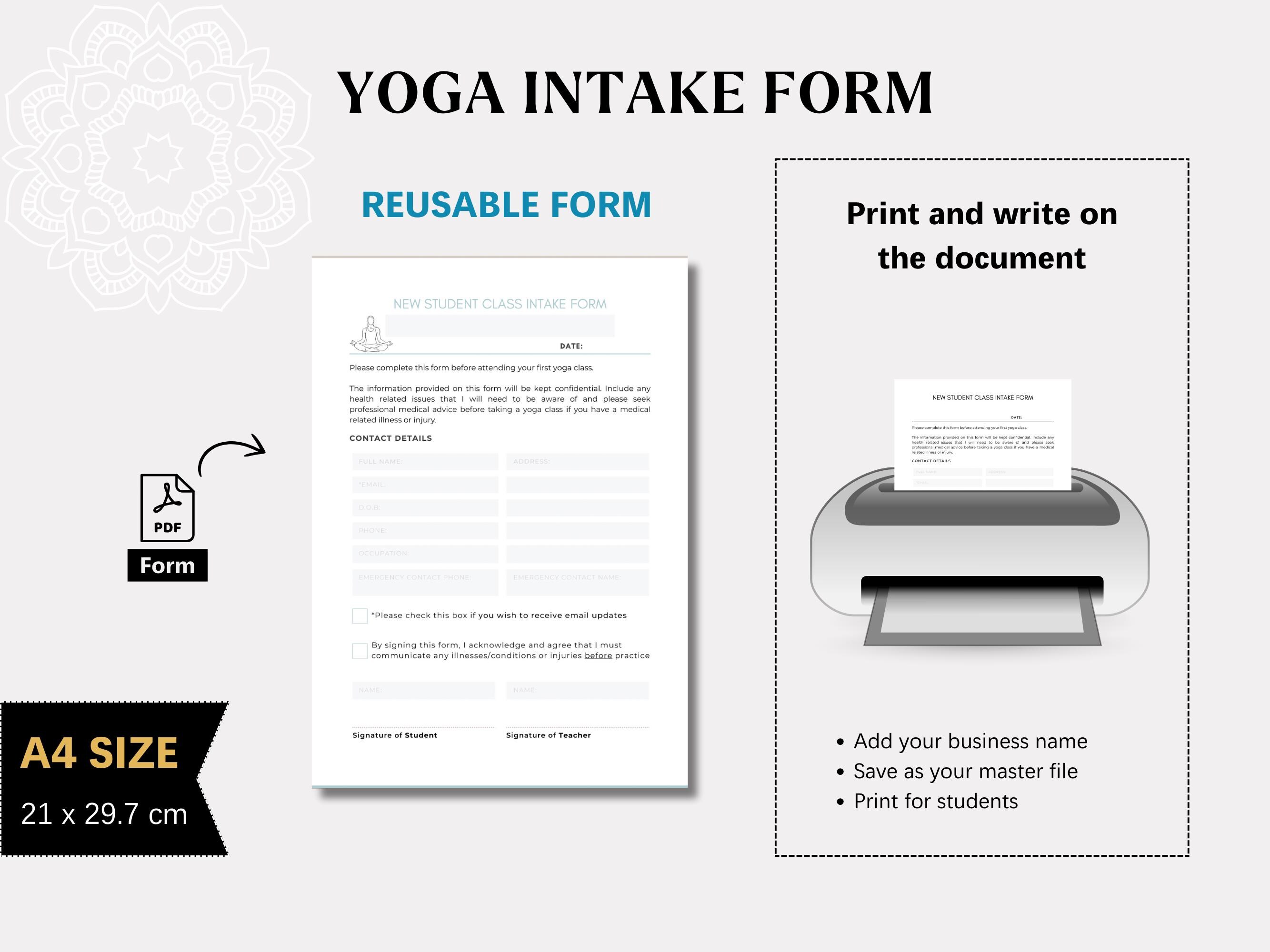 Yoga Student Intake Form A4 Size Yoga Studio Form Yoga Teacher Yoga