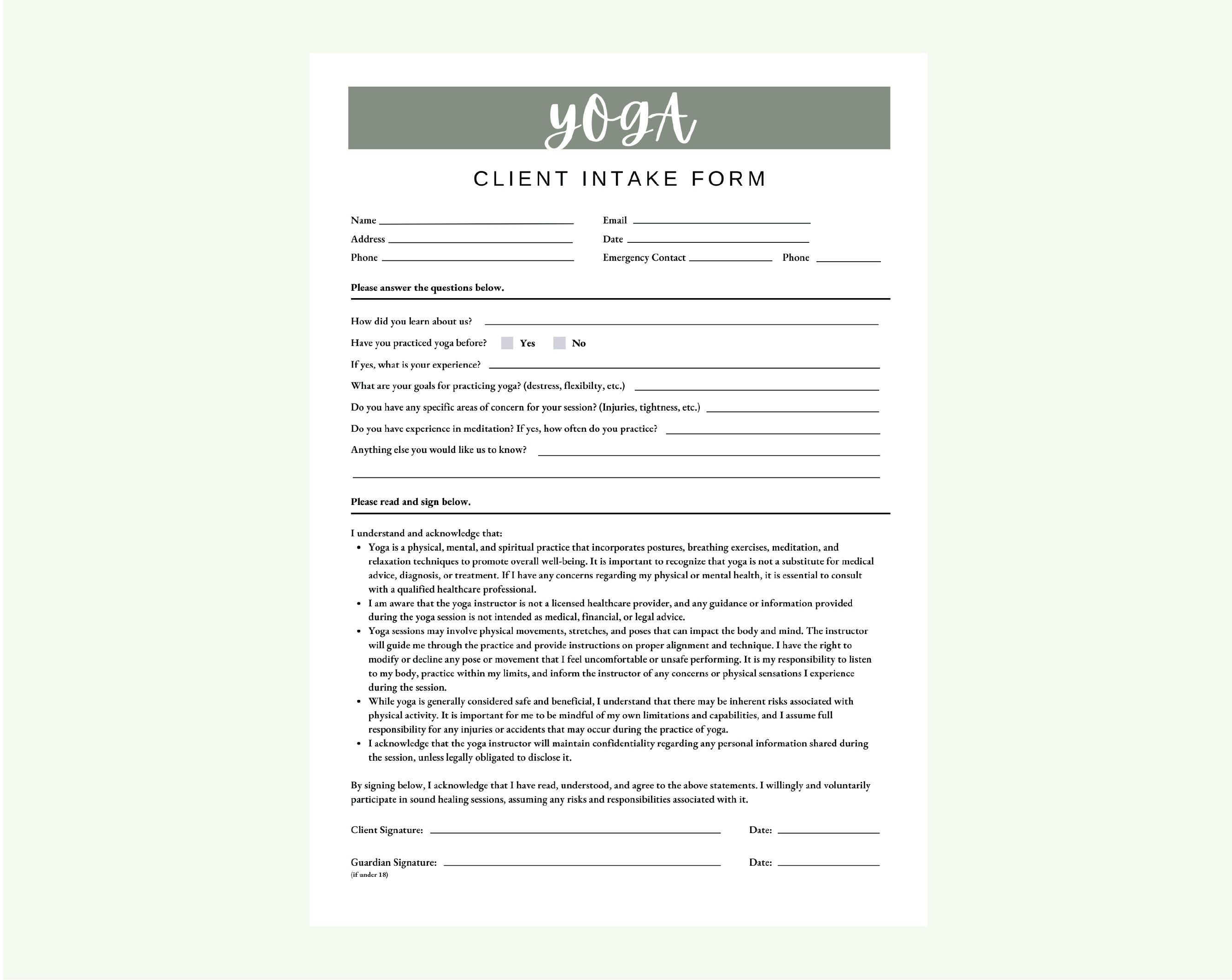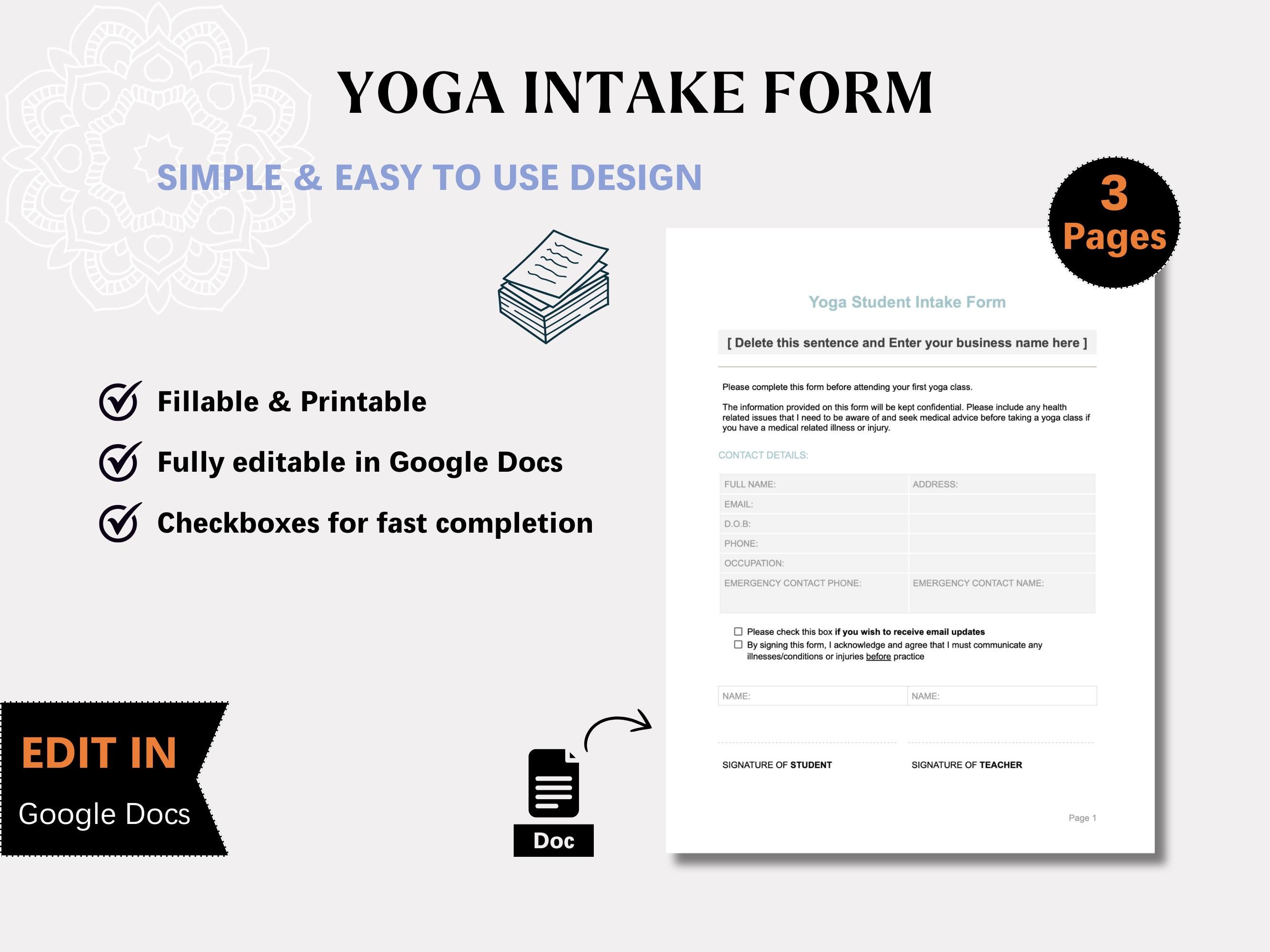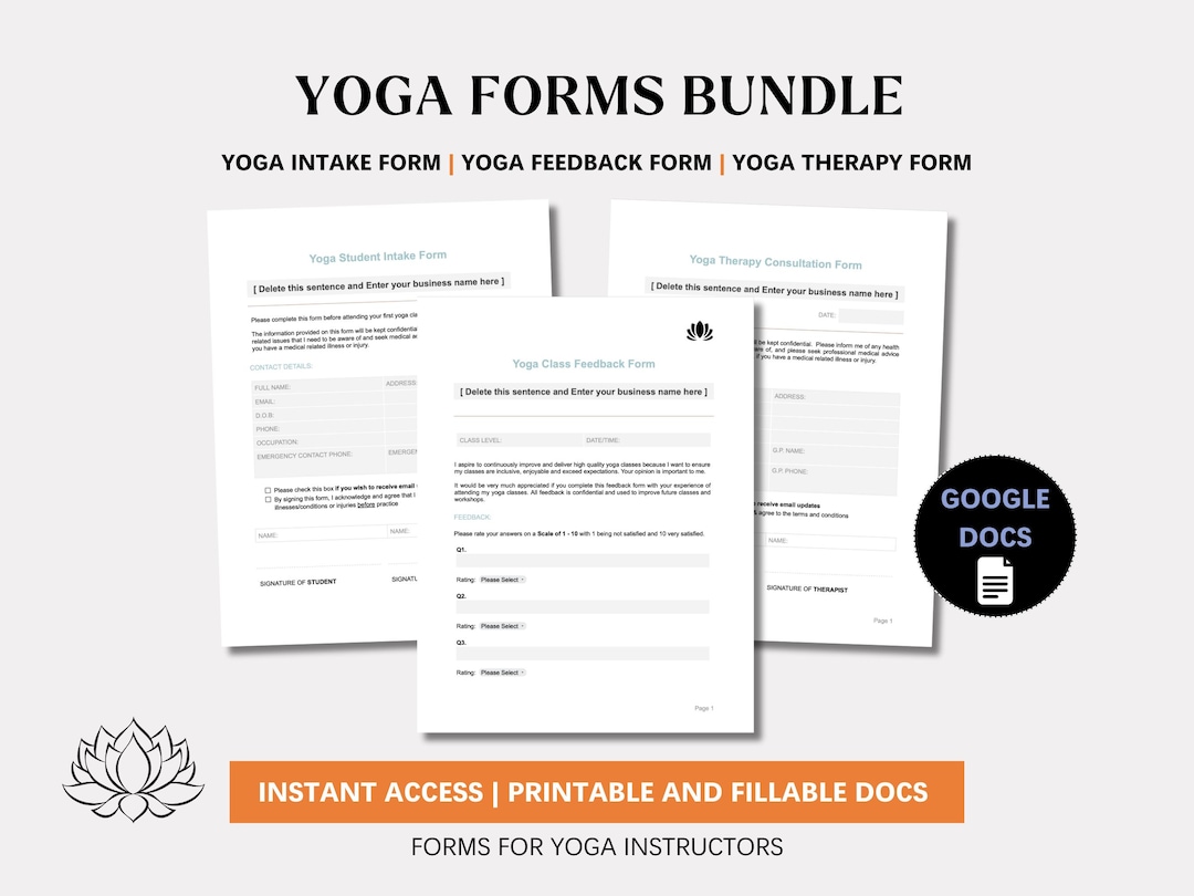 Yoga Forms Bundle Google Docs Editable Yoga Forms Yoga Intake Form