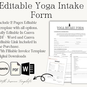 Yoga Forms Bundle Editable Yoga Canva Templates Yoga Intake Form