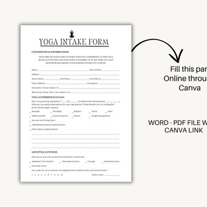 Yoga Intake Form Editable Canva Yoga Template US Size Yoga
