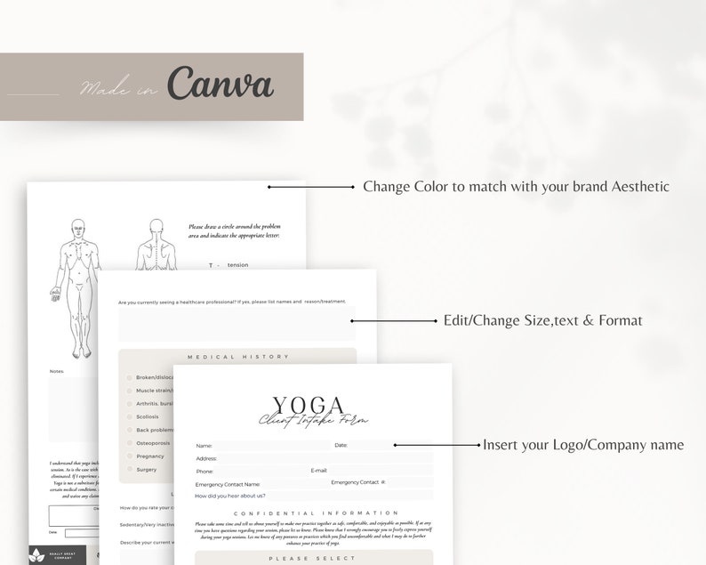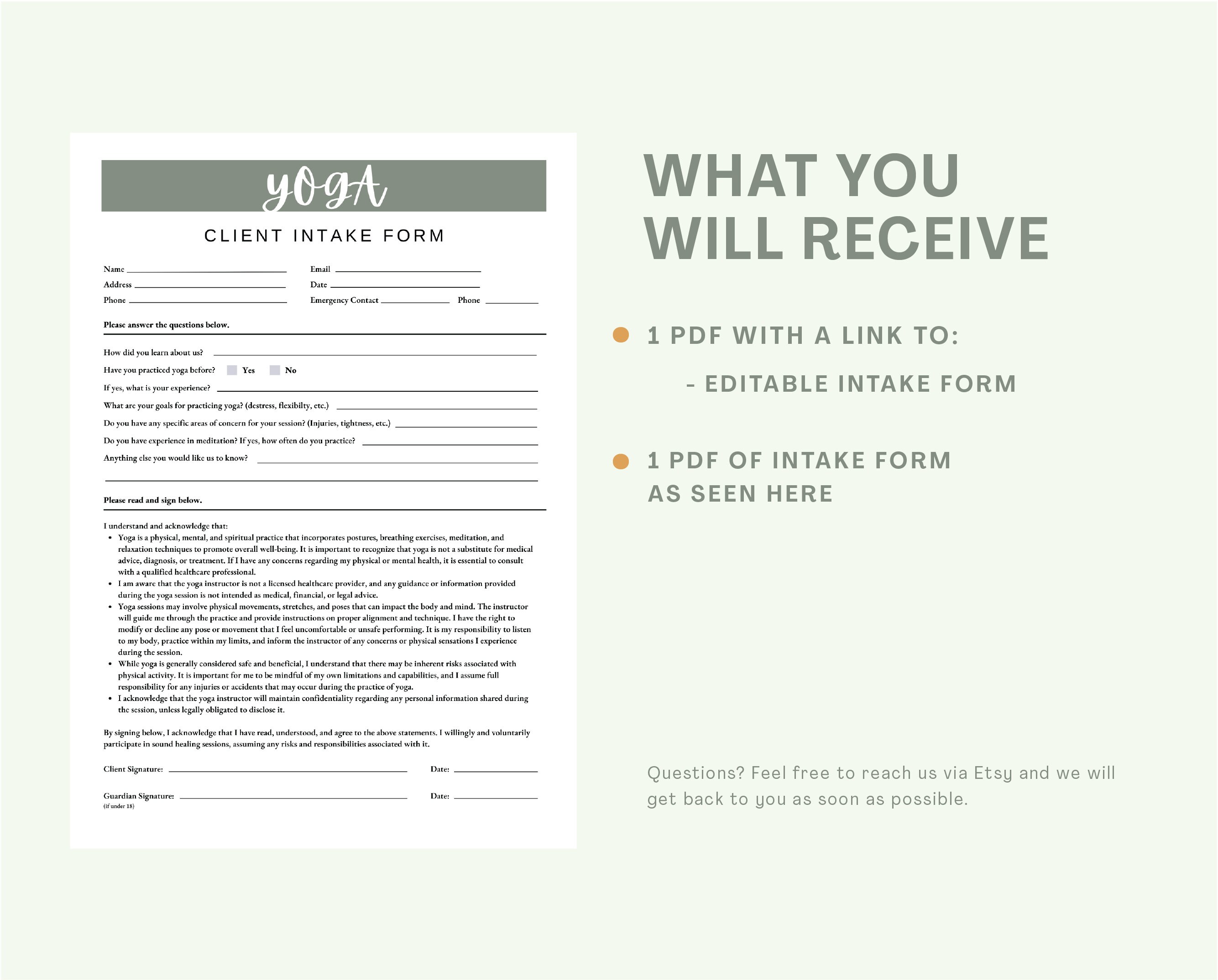Customizable Yoga Client Intake Form Made in Canva for Yoga Etsy