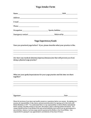 Fillable Online yoga intake form template Fax Email Print pdfFiller