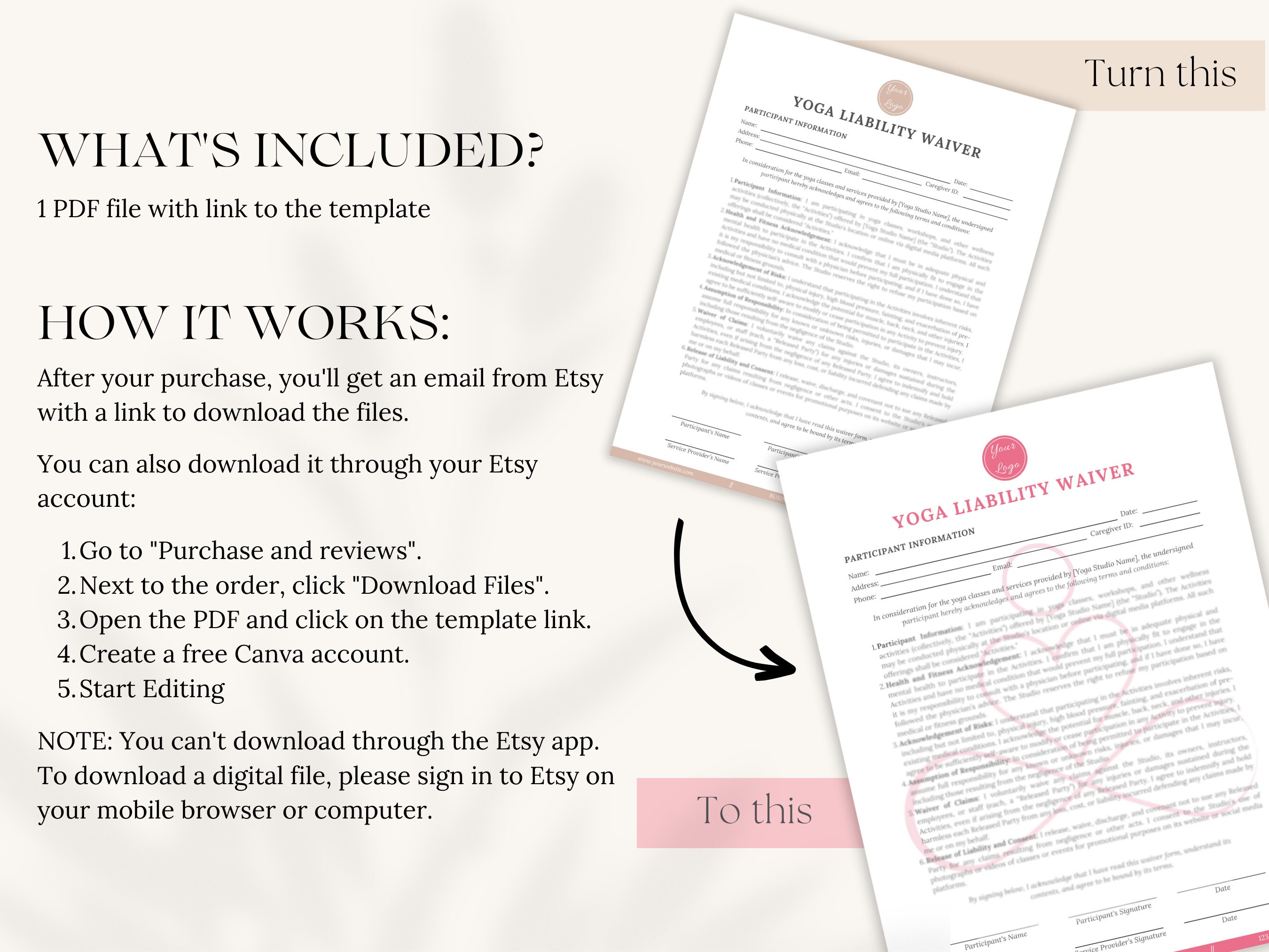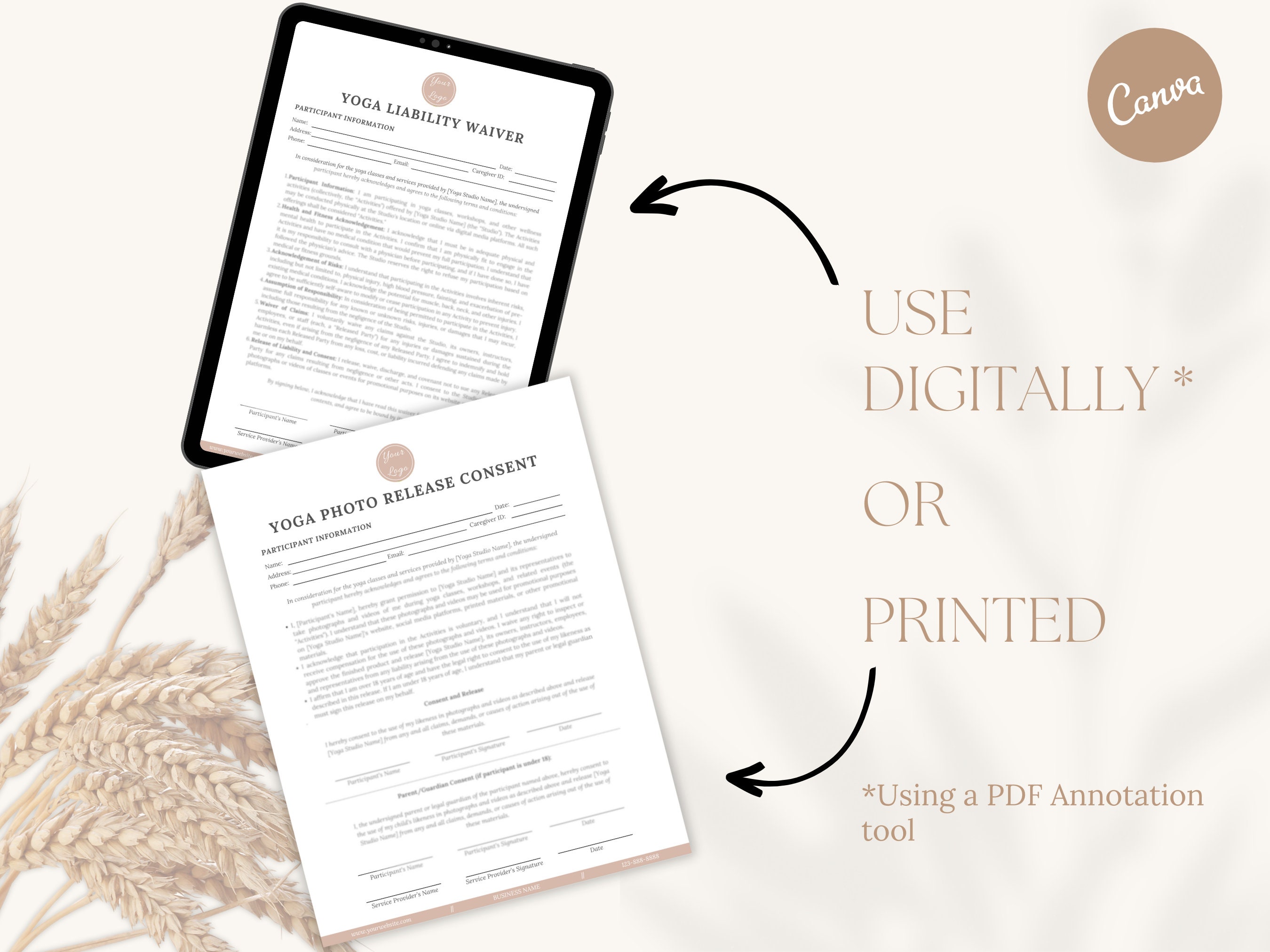 Yoga Liability Waiver Template: Editable Form for Yoga Studio (canva