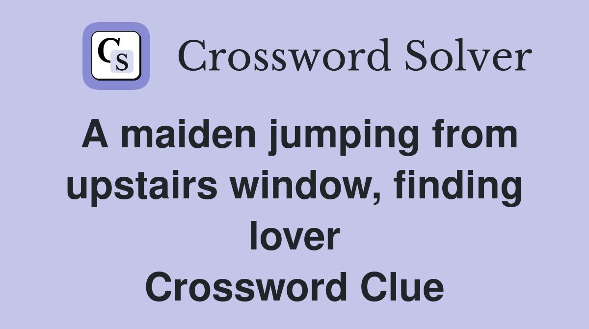 A maiden jumping from upstairs window finding lover Crossword Clue