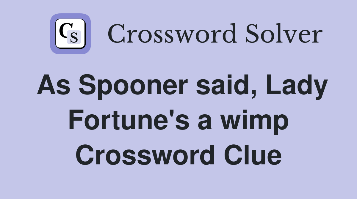As Spooner said Lady Fortune #39 s a wimp Crossword Clue Answers