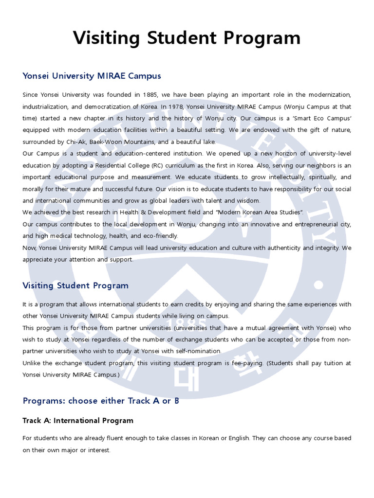 Yonsei University MIRAE Campus Fact Sheet Visiting Students PDF