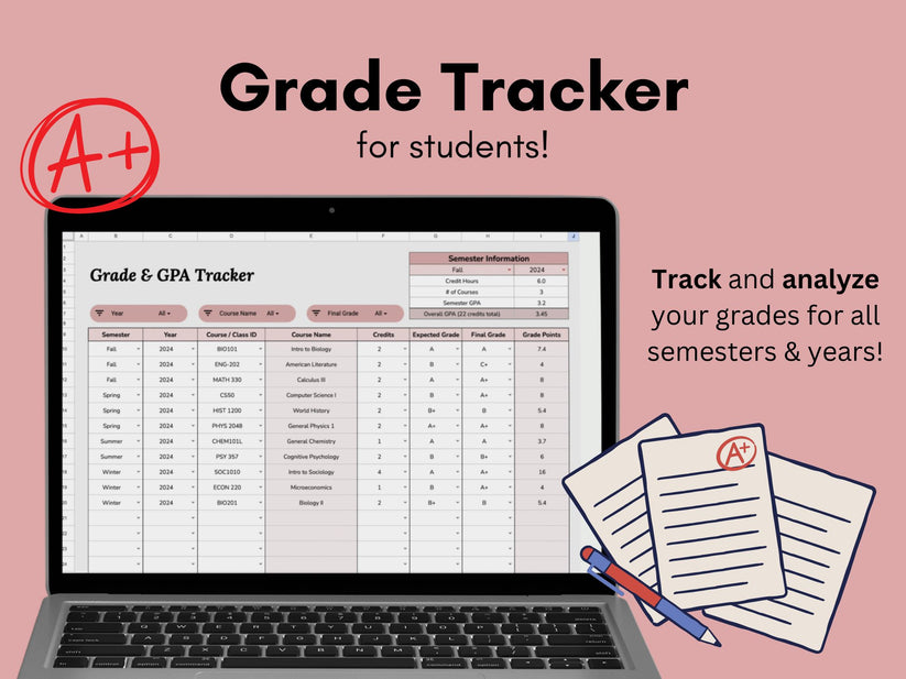 Grade Tracker for students Google Sheets Template You are Loved