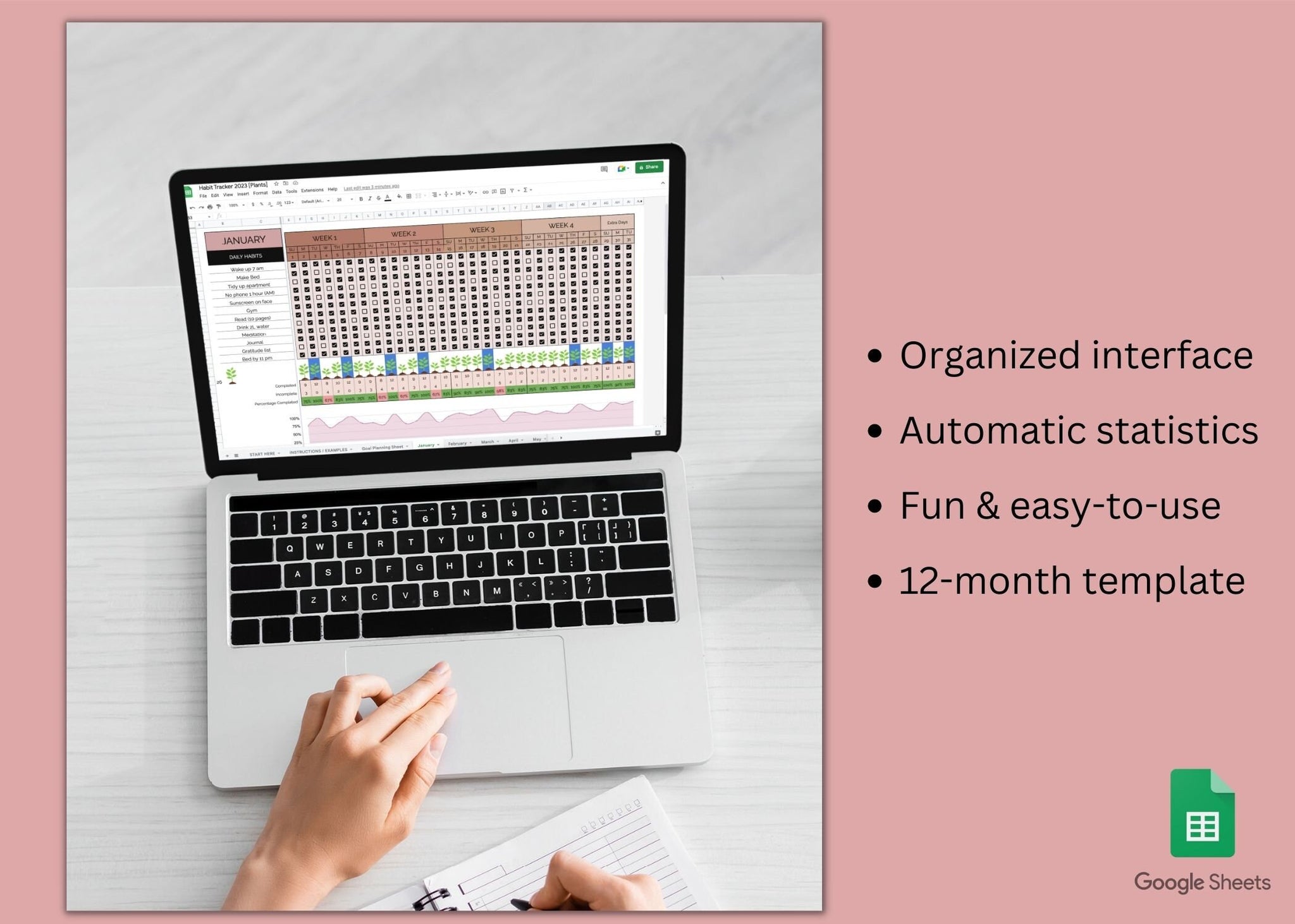 Habit Tracker Grow Plants Sunflowers Google Sheets Template You