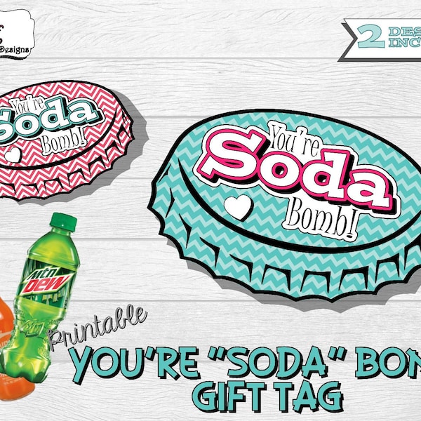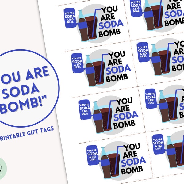 PRINTABLE You Are Soda Bomb Soda Gift Tags Co worker Gift Simple Thank