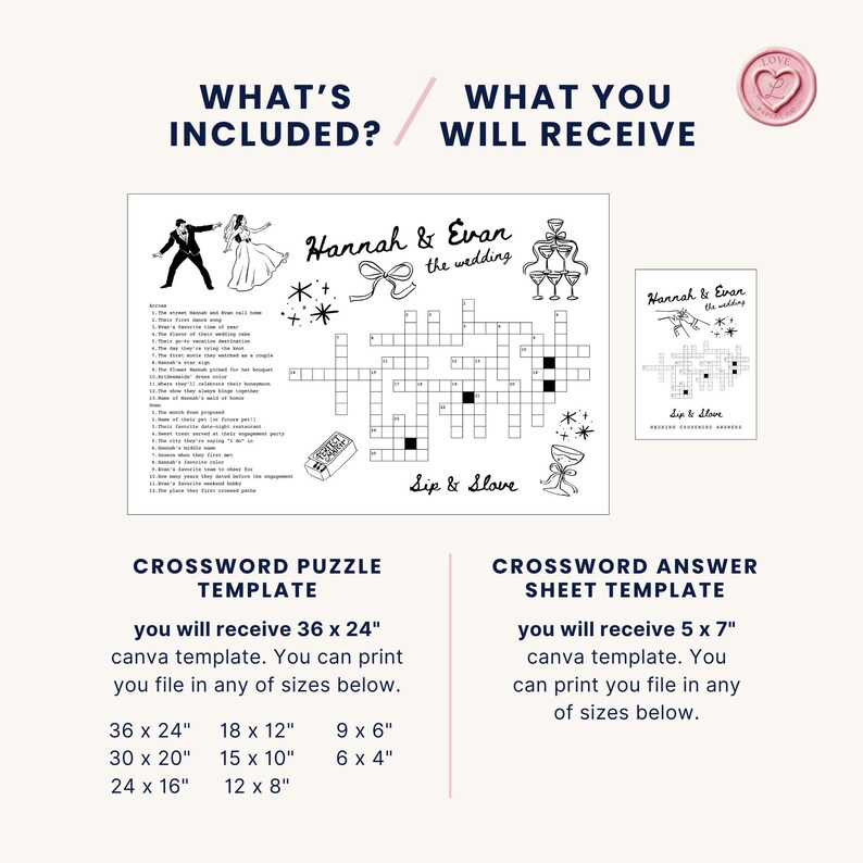 Custom Wedding Crossword Puzzle: Sip and Solve Guest Game (digital